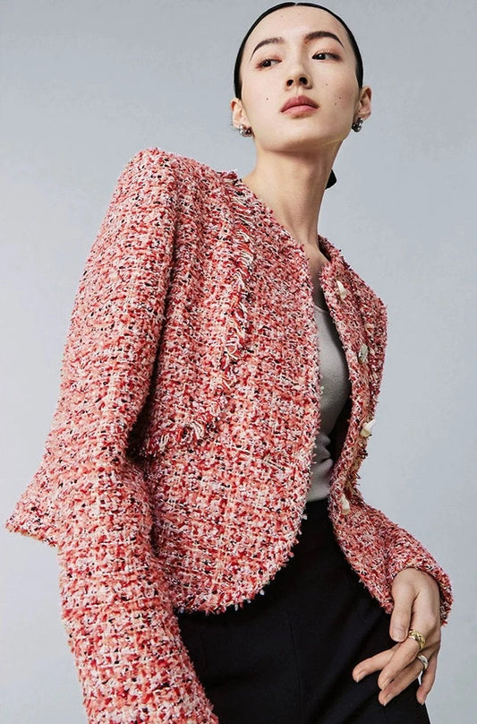 PURITY High-end boutique luxury classic magenta tweed coat- Celine