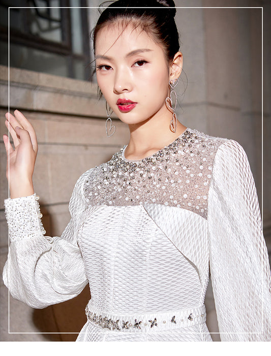 Beaded design with a contemporary fashion long sleeve dress- Chrisa