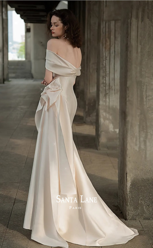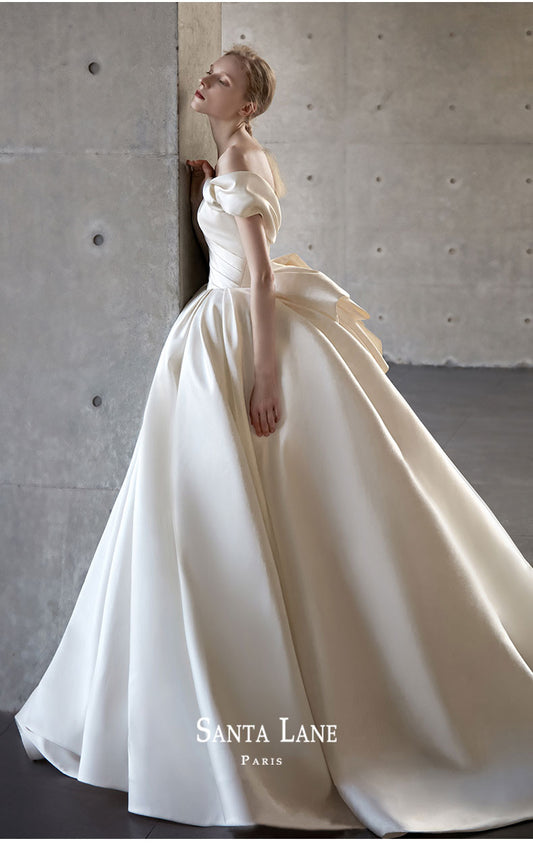 Early Spring 2023 Winter one-shoulder satin satin wedding dress- Sally