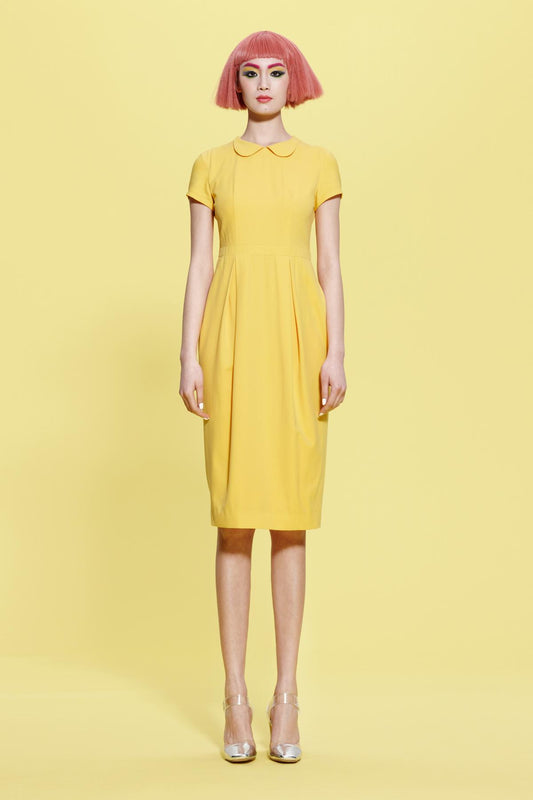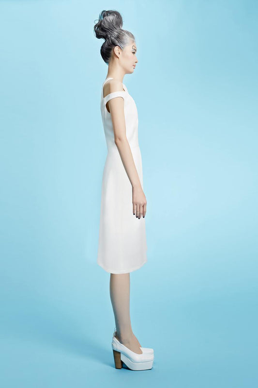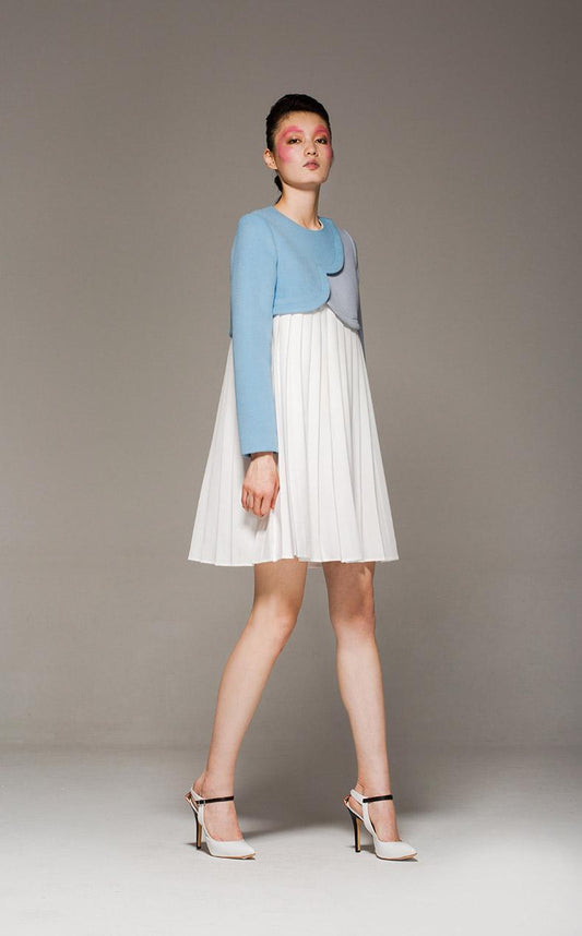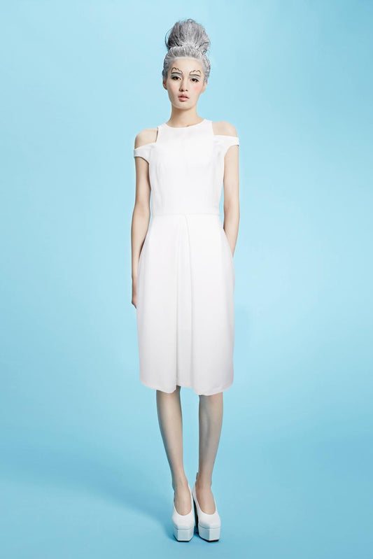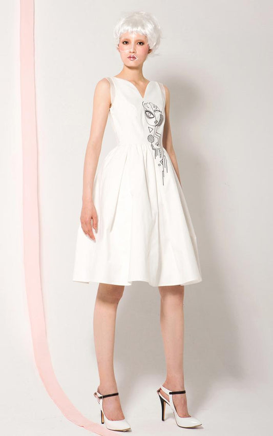 New heart-shaped collar silk embroidery sleeveless pleated full skirt white dress- Coale