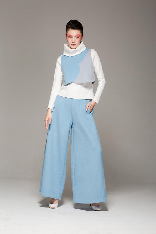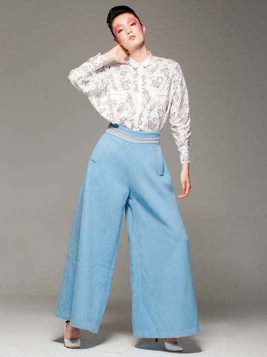 Designer autumn and winter double-sided pure wool light blue aura wide-leg pants- Gilaw