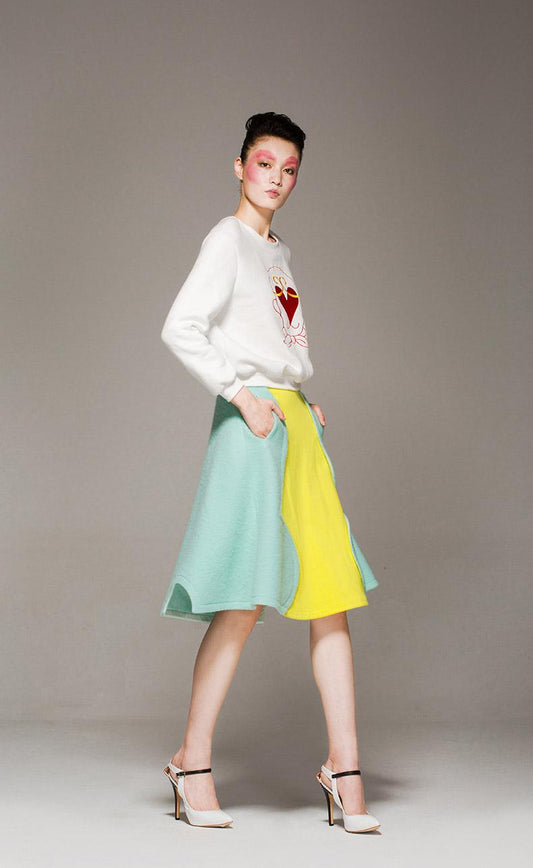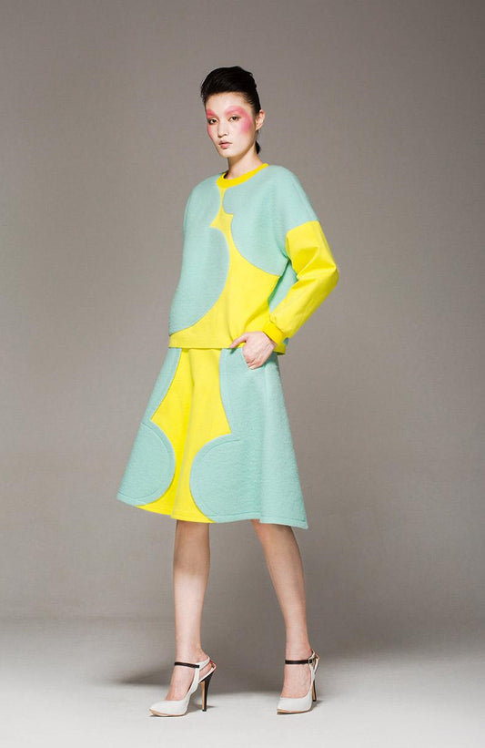 Color geometric sweet long-sleeved sweater and skirt suit set- Eliqua
