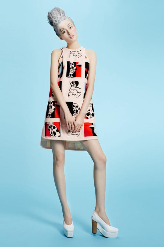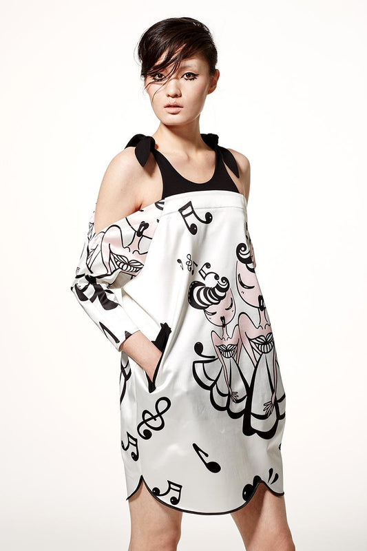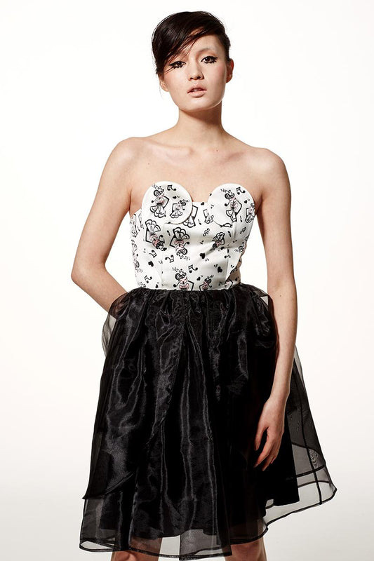 Series Music black and white print strapless dress