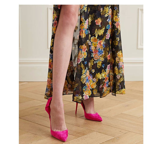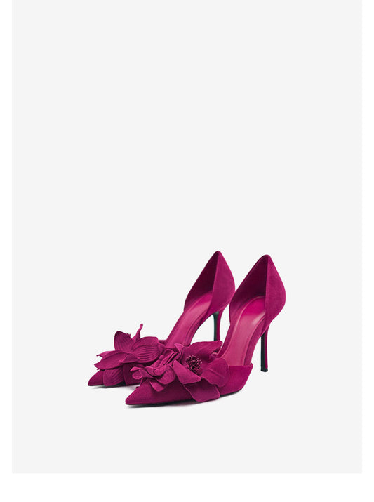 Early 2023 spring heep-reverse flower pattern, and a comfortable Fuchsia heel Lora