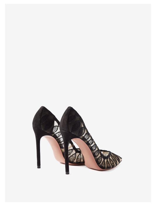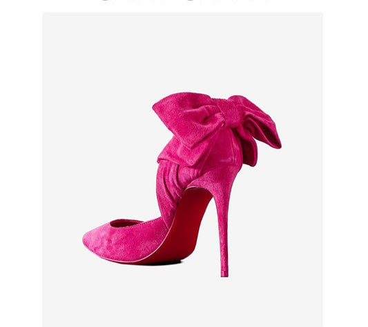Early 2023 spring new black silk bow stiletto high-heeled shoes- Coqa