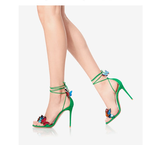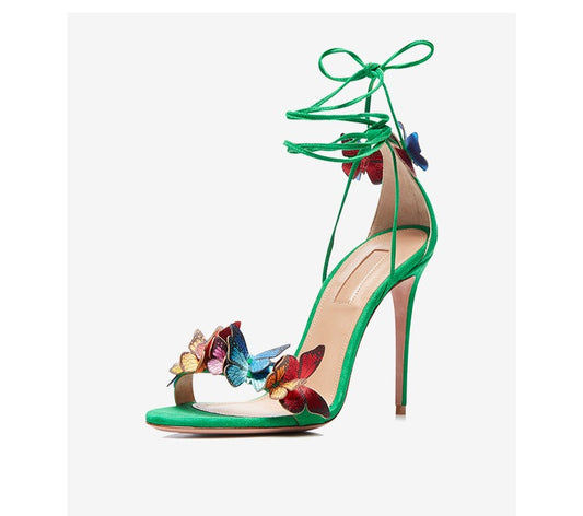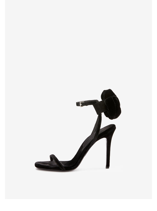 Spring and summer new lake blue suede flower stiletto high-heeled open-toed sandals- Chili