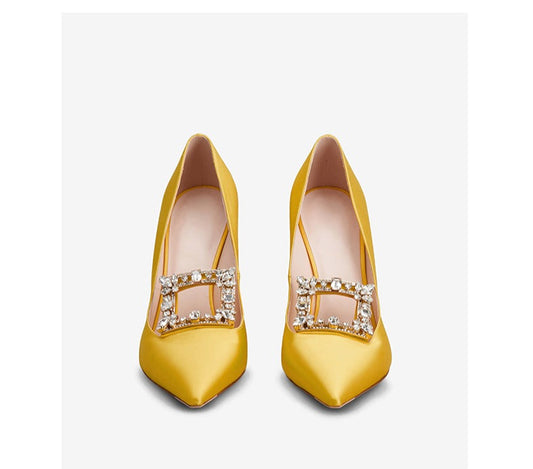 pointed toe shallow mouth nude sparkling crystals pumps shoe- Cleo