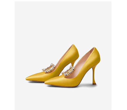 2023 spring new white silk bow stiletto high-heeled shoe- Tola