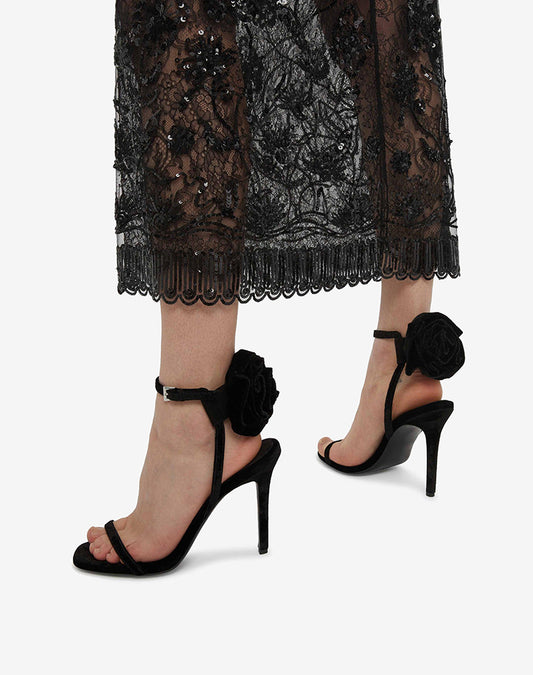 Spring and summer new lake blue suede flower stiletto high-heeled open-toed sandals- Chili