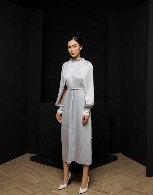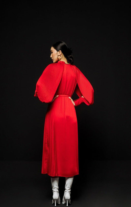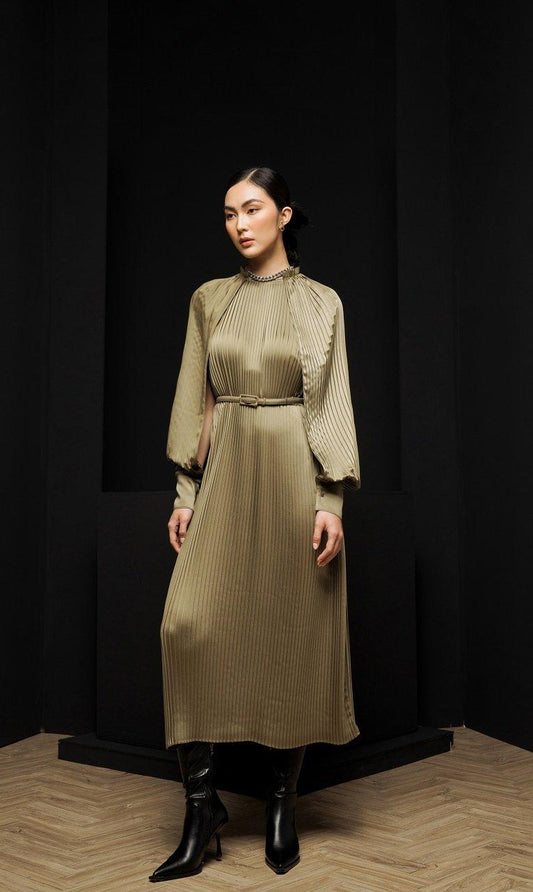 Mustard Long sleeve pleated Lewitsham Dress- Edna