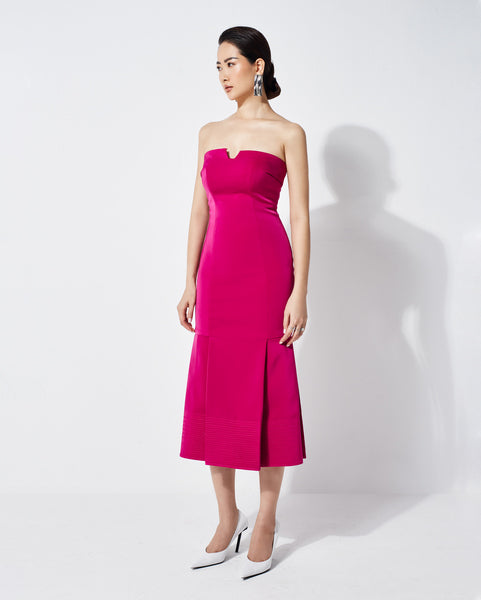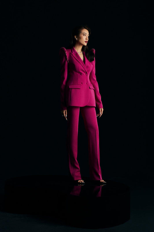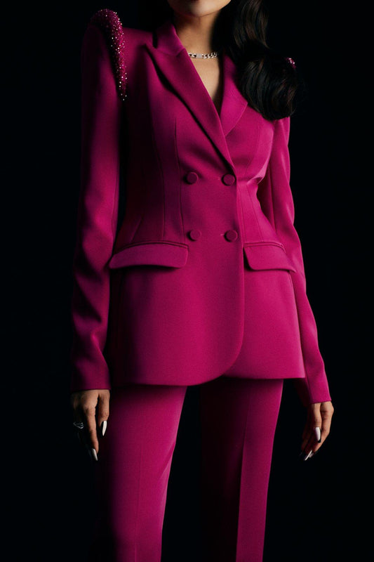 Elegant long drapping flap pencil skirt fuchsia suit set- Tati