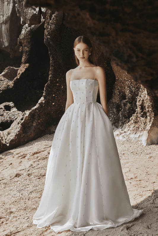 Tracy Studio luxury crystal embellished Straight Across Strapless Evening Dress - Tiffane dress