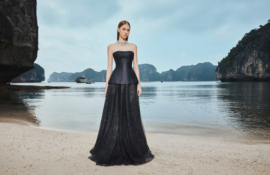 Tracy Studio luxury crystal embellished Strings Flared Cape - Tiffane Cape
