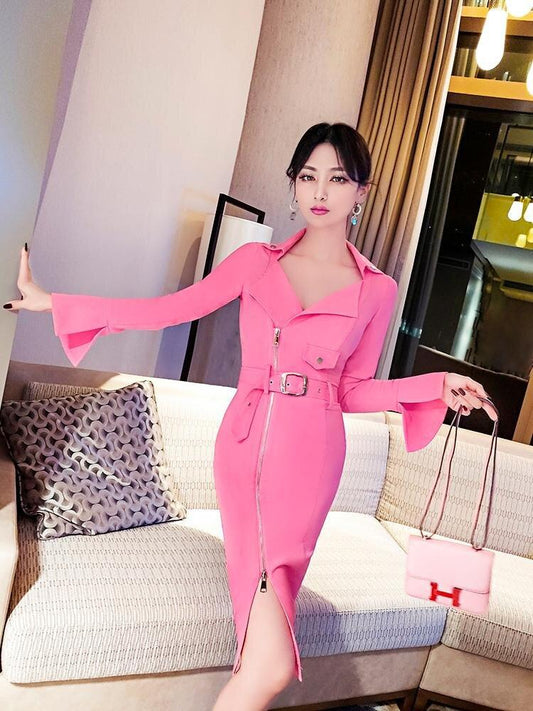 VJE spring big lapel high waist pocket 2021 striped jumpsuit -Litor