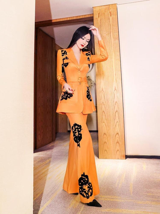 VJE Printed patch Flared Pants Two-piece pant Suit - Kio