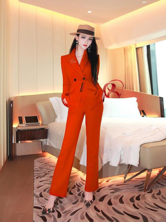 VJE Burnt orange autumn color irregular trousers two-piece pant suit - Bari