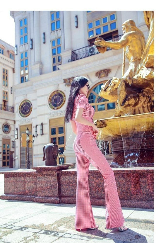 VJE women's spring sexy inner vest trousers micro-flared trouser two-piece suit - Nuria Please take a set