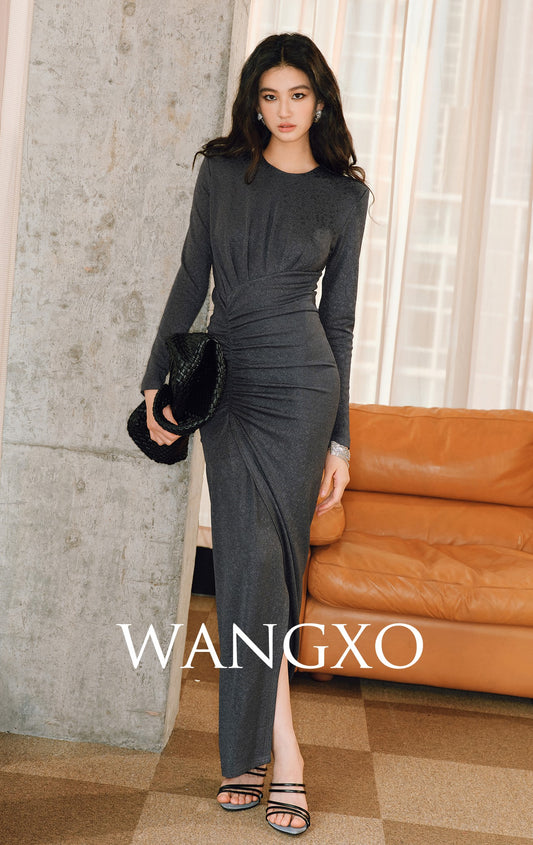WANGXO | Soft Velvet 3-Yarn Stitching Pleated Slim-Fit Knitted Dress- LENA.