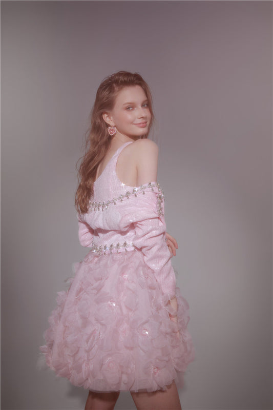 Wardrobes by Chen High End Light Blue Sequin Beaded Top/Short Pleat Skirt-Bee