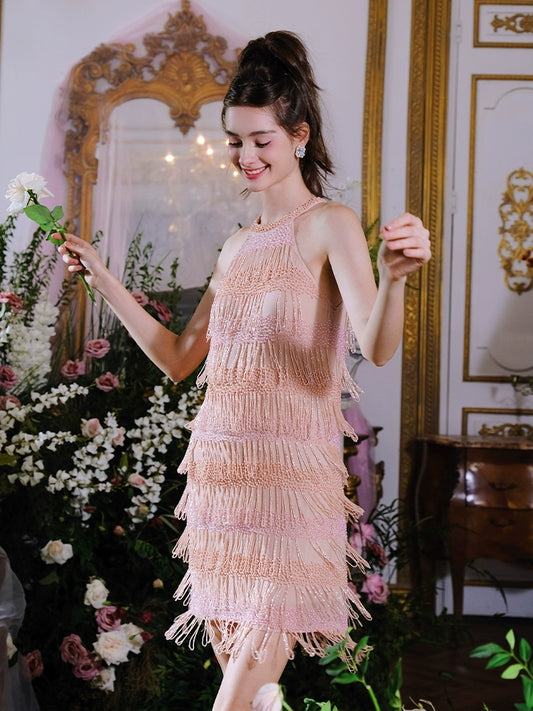 Wardrobes By Chen Luxury Light Pink Round Neck Sleeveless Dinner Coat- Piliok