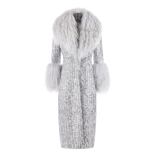 Wardrobes by Chen Elegant Long Sleeve Sequin Feather Party Dress-Daiadem