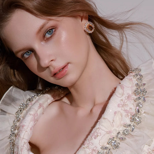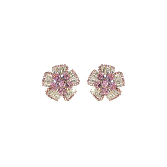 Wardrobes by Chen Luxury Pink Light Diamond Flower Earrings-Kiki