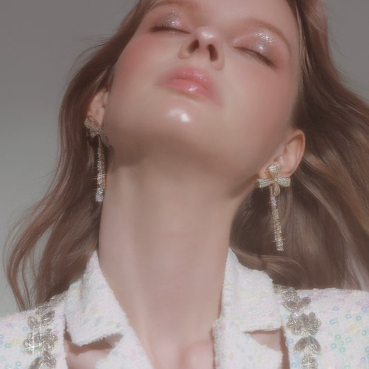 Wardrobes by Chen Luxury Gold Bow Tassel Diamond Earrings-Beck