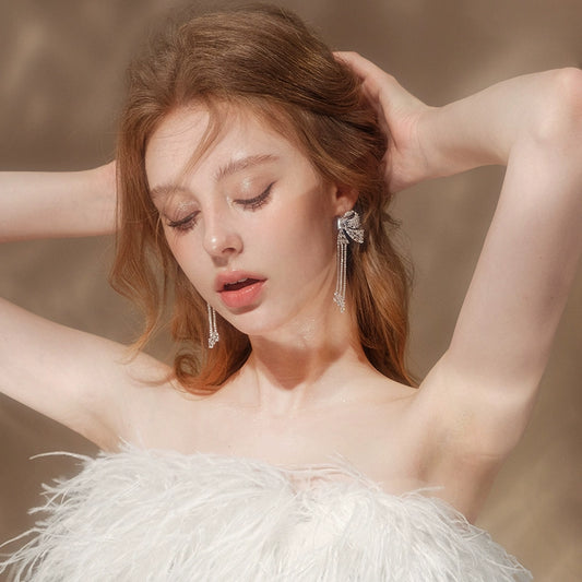 Wardrobes by Chen Luxury Light Bow Diamond Tassel Earrings-Sola