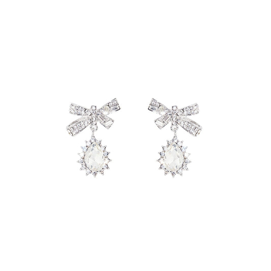 Wardrobes by Chen Classic Gold Water Drop Diamond Bow Stud Earrings-Phoebe