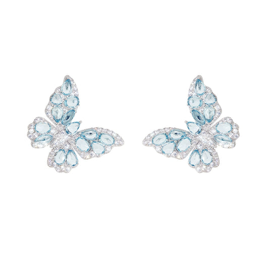 Wardrobes by Chen Light Luxury Sparkling Diamond Butterfly Stud Earrings- Trace