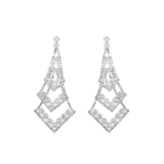 Wardrobes by Chen Luxury Sparkling Sliver Geometric Diamond Earrings- che