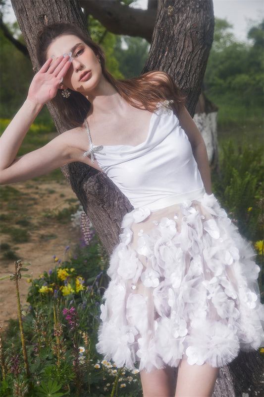 Wardrobes by Chen Elegant White Sleeveless Flower applique mini bridal Dress-Krystin
