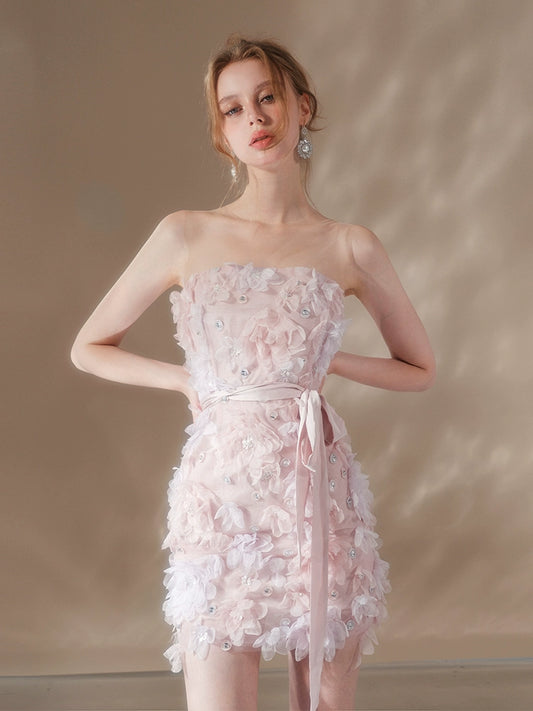 Wardrobes by Chen Elegant Pink Sleeveless Floral Short Dinner Dress-Sheila