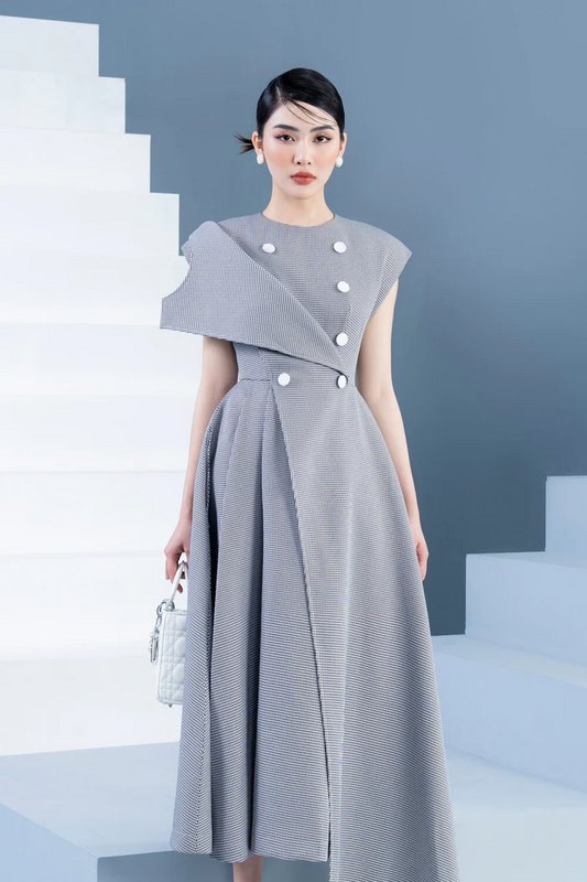 Early Spring 2023 new oblique shoulder gradient lady high waist dress- Tutu
