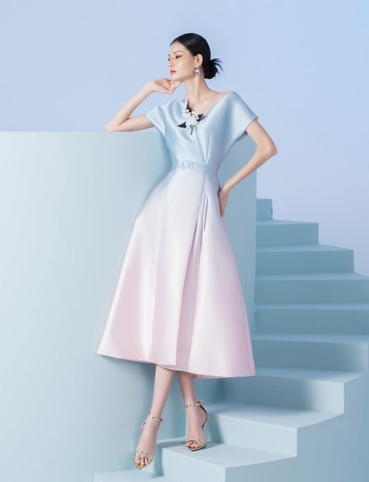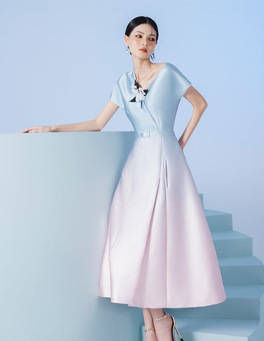 Early Spring 2023 new short-sleeved gradient elegant daily cocktail dress- Jambalaya