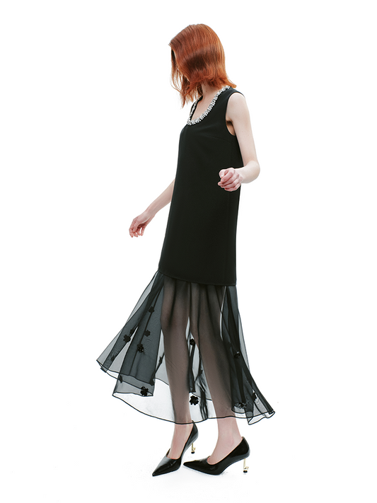 YES BY YESIR | Ye Qians Artistic Patchwork Dress with Asymmetrical Hem -DELILAH.