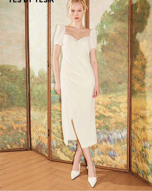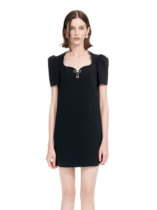YES BY YESIR | Half-Sleeve Dress with Diamond Bow-VIANORA.