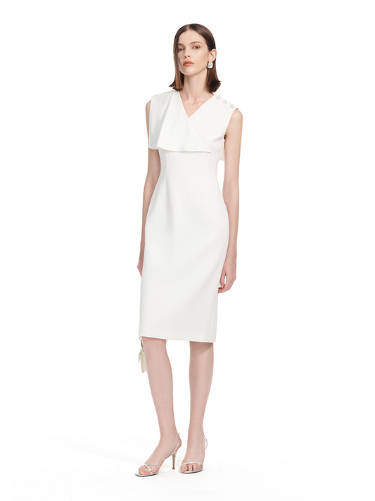 YES BY YESIR | Deconstructed Midi Dress with Fluttering Collar-ALINORA.