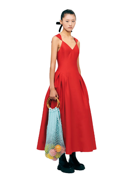 YES BY YESIR pressed pleats sexy elegant red evening formal dress- Aiitca
