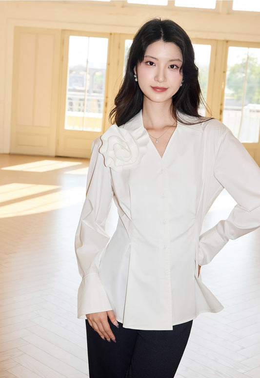 YES BY YESIR three-dimensional flower long-sleeved v neck shirt - TERIAL.