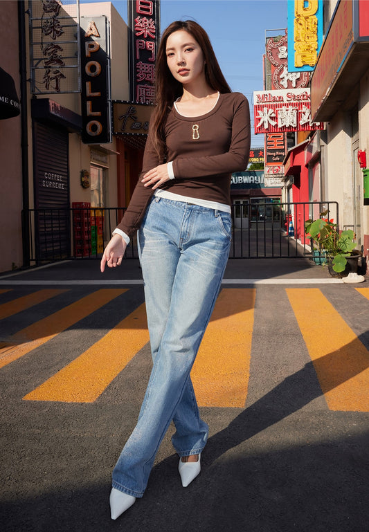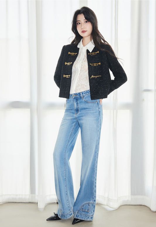 YES BY YESIR calla lily permed bead straight-leg jeans - HALT.
