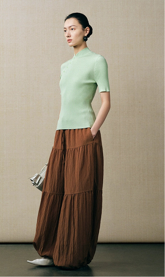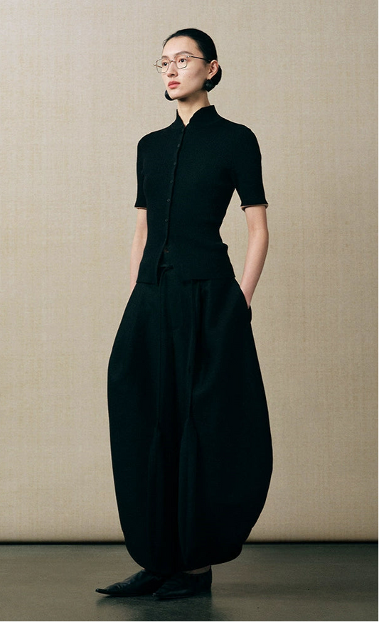 ZHUCHONGYUN short-sleeved single-breasted stand-up collar slim knitwear-TAGO.