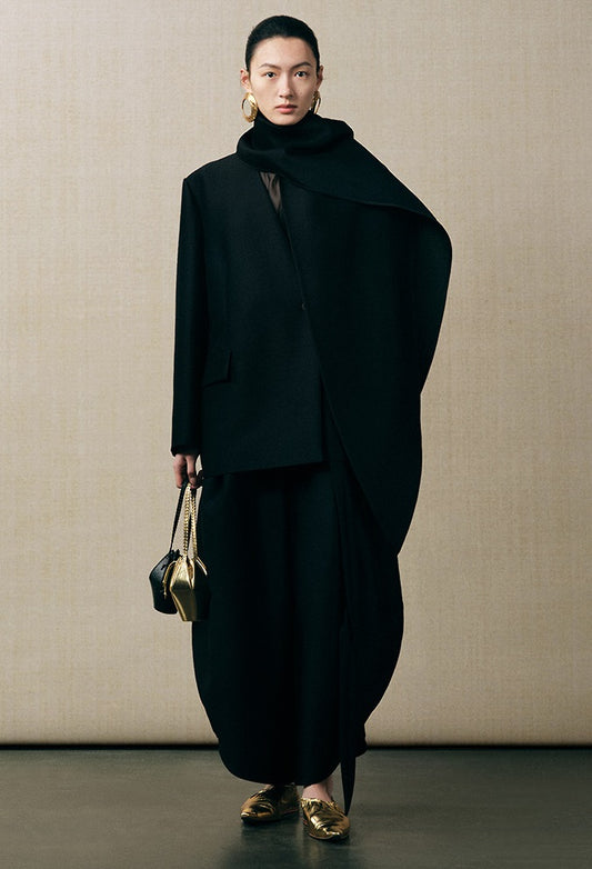 ZHUCHONGYUN H-shaped black drawstring waist straight back slit skirt-HUGH.