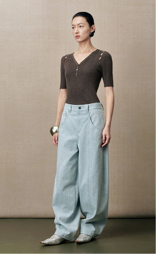 ZHUCHONGYUN straight-cut high waist casual jean pants-COCO.