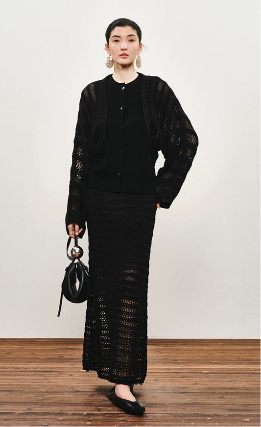 ZHUCHONGYUN curved slit skirt and long sleeve top outfit set-NANA.