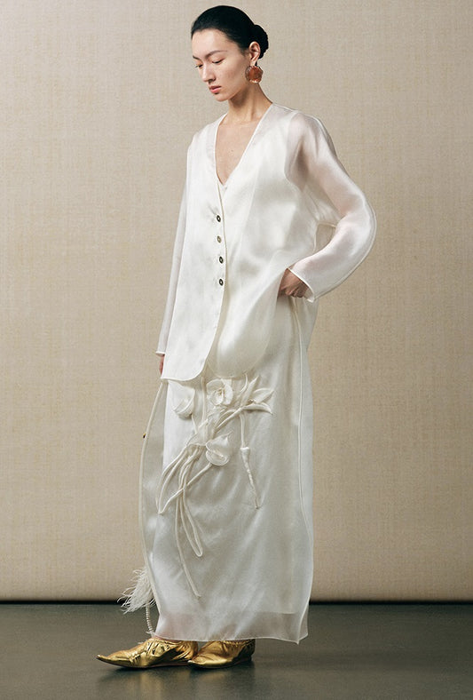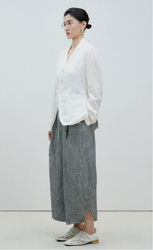 ZHUCHONGYUN elegant white linen blazer-URAHARA.