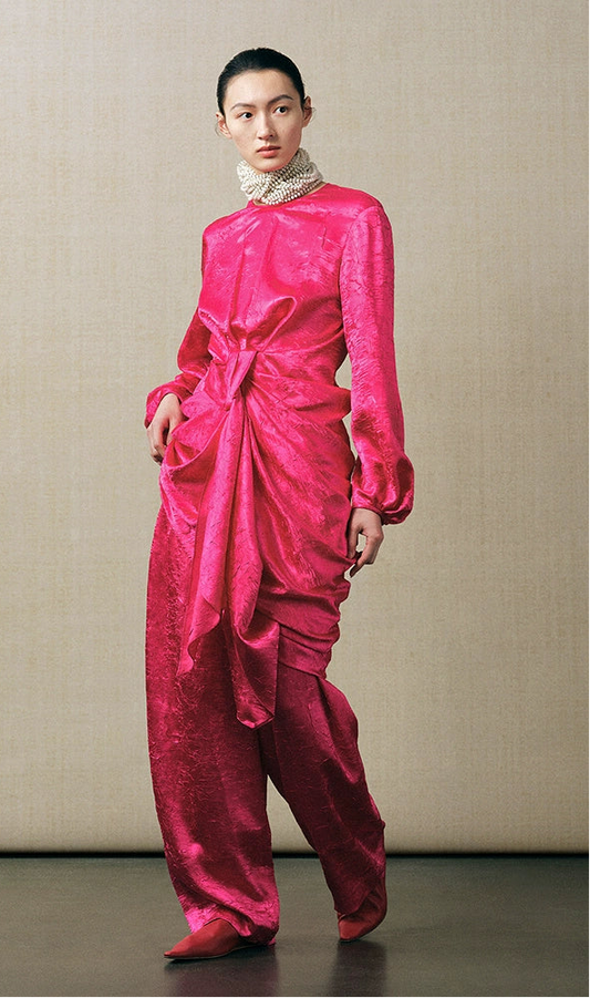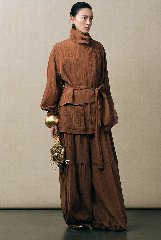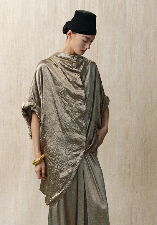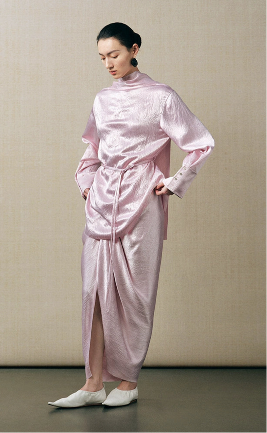 ZHUCHONGYUN irregular long sleeve shirt and ruched long skirt outfit set-REINER.