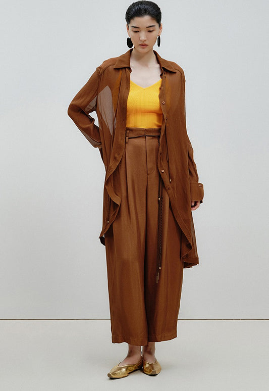 ZHUCHONGYUN coffee brown hand-woven belt cropped pants-TODOROKI.