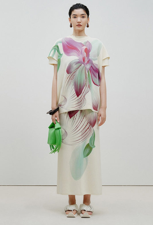 ZHUCHONGYUN embroidery slit flower straight skirt-GIYUU.