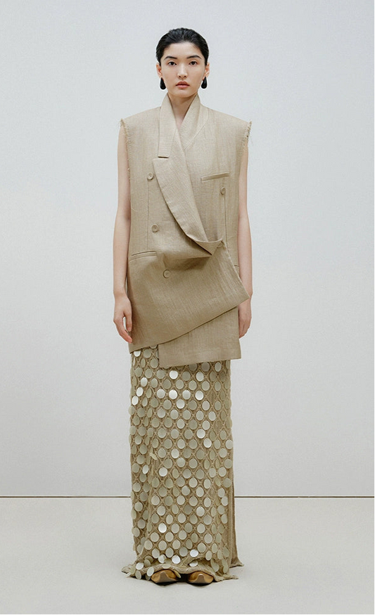ZHUCHONGYUN khaki linen loose straight vest-ISHIGAMI.